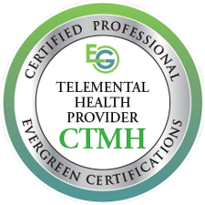 - CTMH Certified Telemental Health Provider – Evergreen Certifications – Certification No 172366 – Issue Date 07/07/2020 – Expiration Date 07/06/2021